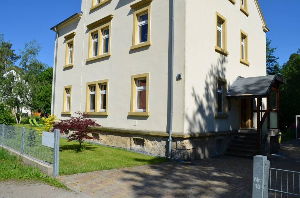 Vorderansicht des Hauses – die Ferienwohnung befindet sich im Erdgeschoß