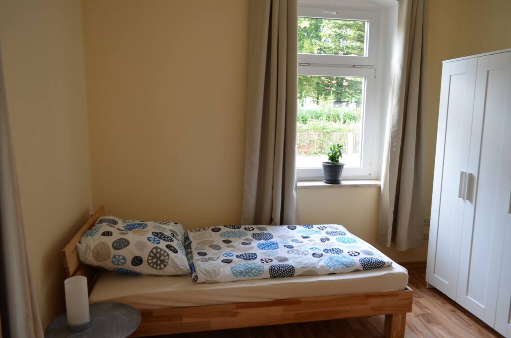 mit zwei zusammengestellten Einzelbetten (können bei Bedarf auch einzeln gestellt werden)